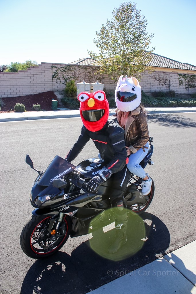 Featuring Elmo and Unicorn. These helmet covers are awesome until you get up to highway speeds and the added wind resistance is pulling your head back! Best to use them around town.
